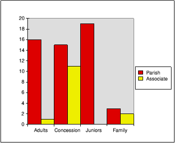 The numbers of members in each category varied considerably between Parish members and Associate members. Parish members are those living within Bishops Waltham, Associate members are those living in surrounding parishes. The numbers of concession members were similar, but there were no Associate Junior members. There were also very few adult Associate members, but there were a similar number of Parish and Associate family members. The focus is on Parish membership as the Parish Council own the lease on the South Pond and the fishing club administer it on behalf of the parish.