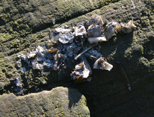 An Otter which was seen about a month ago around the North and South ponds may have settled in. A partly consumed carp was found on a bank of the South pond during January, which is a usual sign. Otter spraint has also been found on one of the fishing swims. There was some discussion, involving the EA, at the end of January as to whether it might be a Mink rather than an Otter. A paw print was photographed in the frost one morning which was smaller than an Otter print. It was a false alarm though as on closer examination the paw print proved to be that of the local moggie. The Otter may just be passing through, as no other partly consumed fish have been found. Alternatively it may have settled into the North Pond, where there is much less disturbance and there are plenty of fish for it to eat.